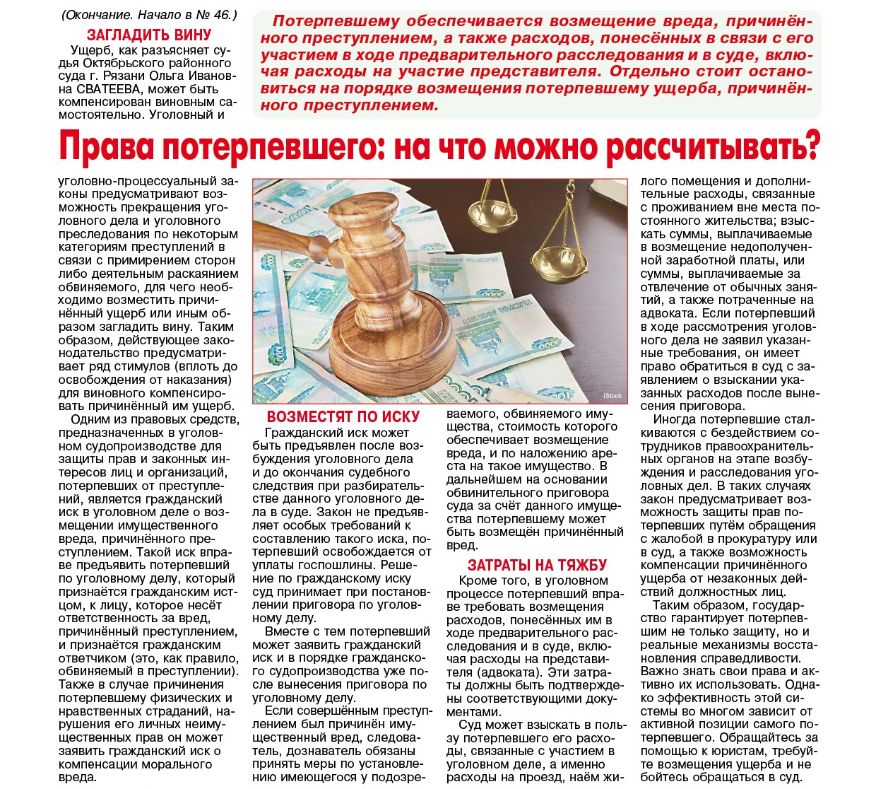 "Права потерпевшего: на что можно рассчитывать?" (О.И. Сватеева, "Панорама города", 19.11.2025, № 47, ч.2)