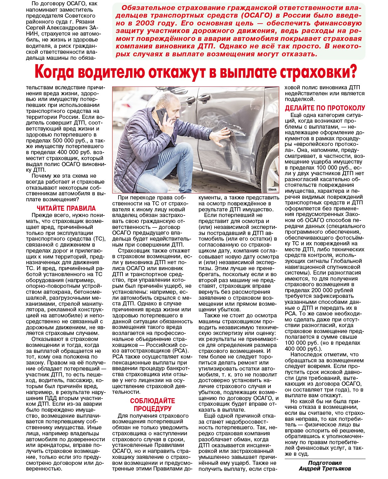 "Когда водителю откажут в выплате страховки?" (С.А. Занин, "Панорама города", 18.02.2026, № 7)