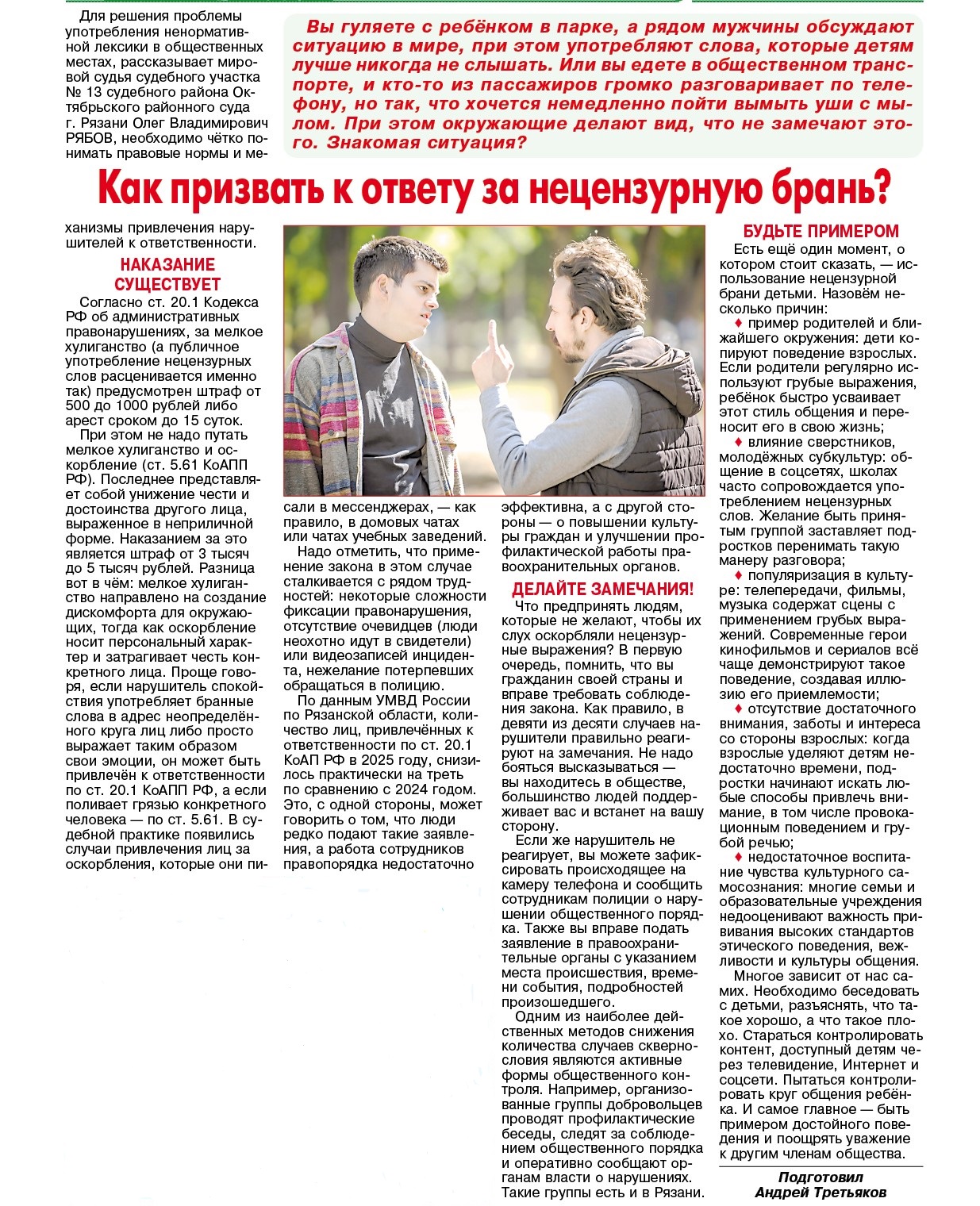 "Как призвать к ответу за нецензурную брань?" (О.В. Рябов, "Панорама города", 11.03.2026 № 10)