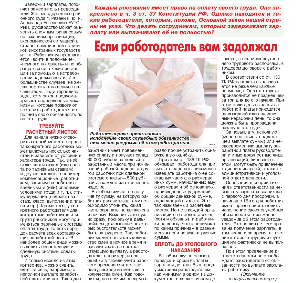 "Если работодатель вам задолжал" (А.Е. Буторин, "Панорама города", 21.05.2025 № 21, ч. 1)