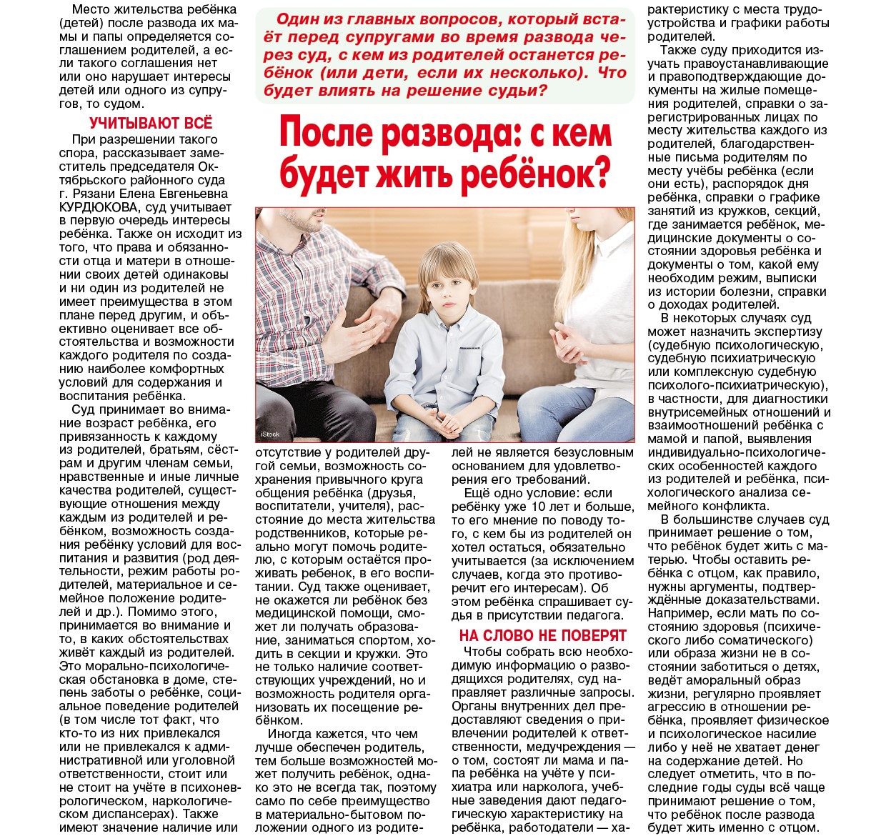"После развода: с кем будет жить ребенок?" (Е.Е. Курдюкова, "Панорама города", 23.07.2025 № 30)
