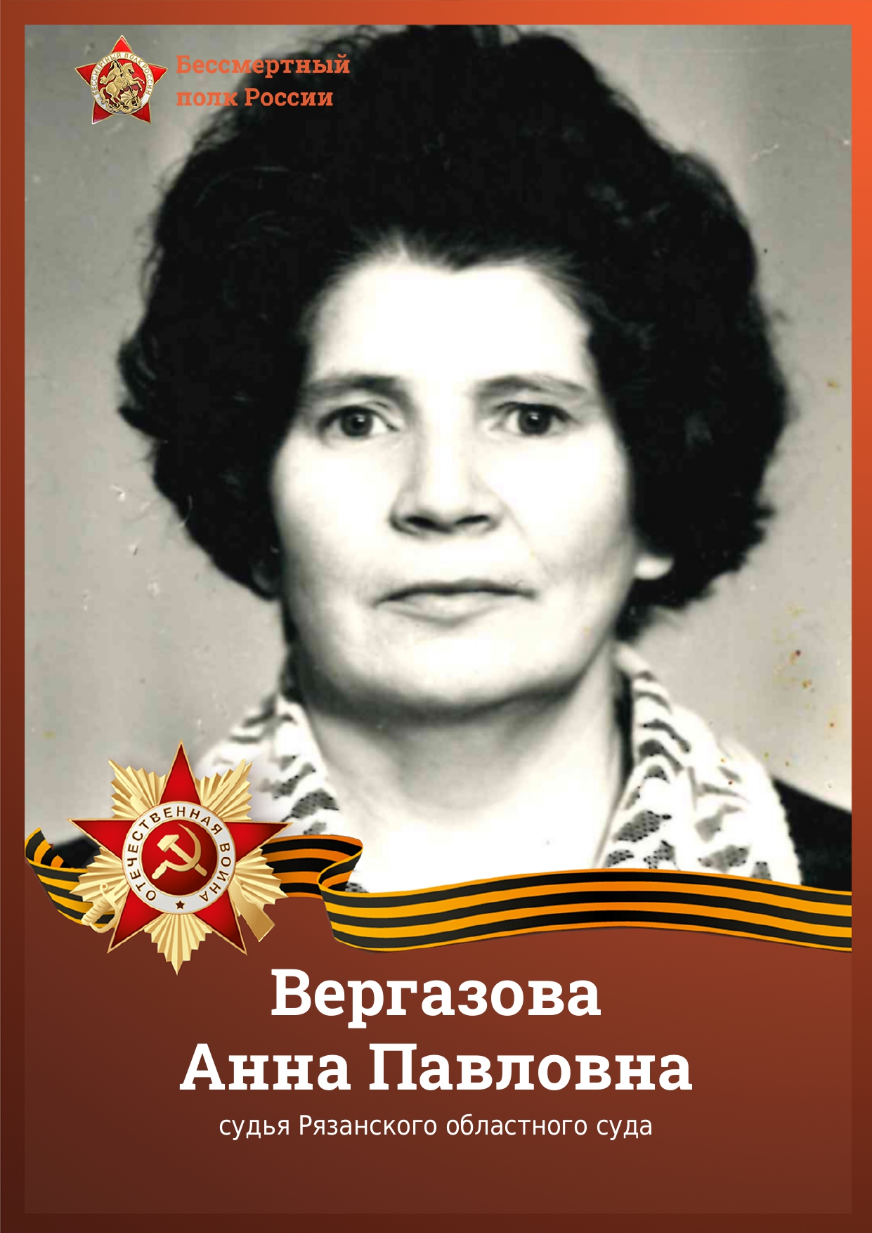 Анна Павловна Вергазова родилась в 1924 году в Рязанской области. В годы Великой Отечественной войны после окончания Липецкого педагогического училища работала в Добровском лесничестве. Окончив в 1953 году Московский юридический институт, Анна Павловна была избрана членом Рязанского областного суда, где проработала в составе судебной коллегии по гражданским делам до 1987 года.