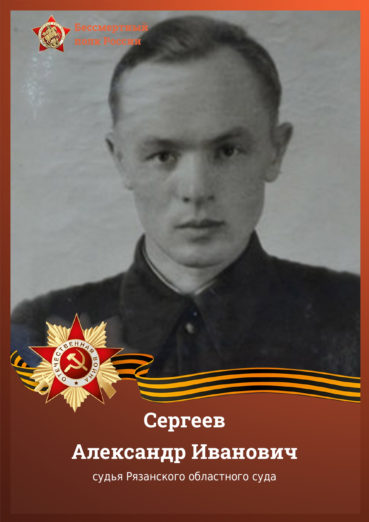 В 1946 году Сергеев демобилизовался и поступил учиться в Саратовскую юридическую школу, с 1948 года по 1953 год проходил обучение во Всесоюзном Юридическом заочном институте. После прохождения стажировки в народном суде Кораблинского района Александр Иванович избран народным судьей в Чучковский район Рязанской области, в марте 1953 года – членом Рязанского областного суда, в декабре 1954 года – народным судьей 1 участка Советского района г. Рязани, в 1960 году – членом народного суда Советского района, и в декабре 1960 года сессией Советского районного Совета депутатов трудящихся г. Рязани Александр Иванович утвержден председателем народного суда Советского района.
