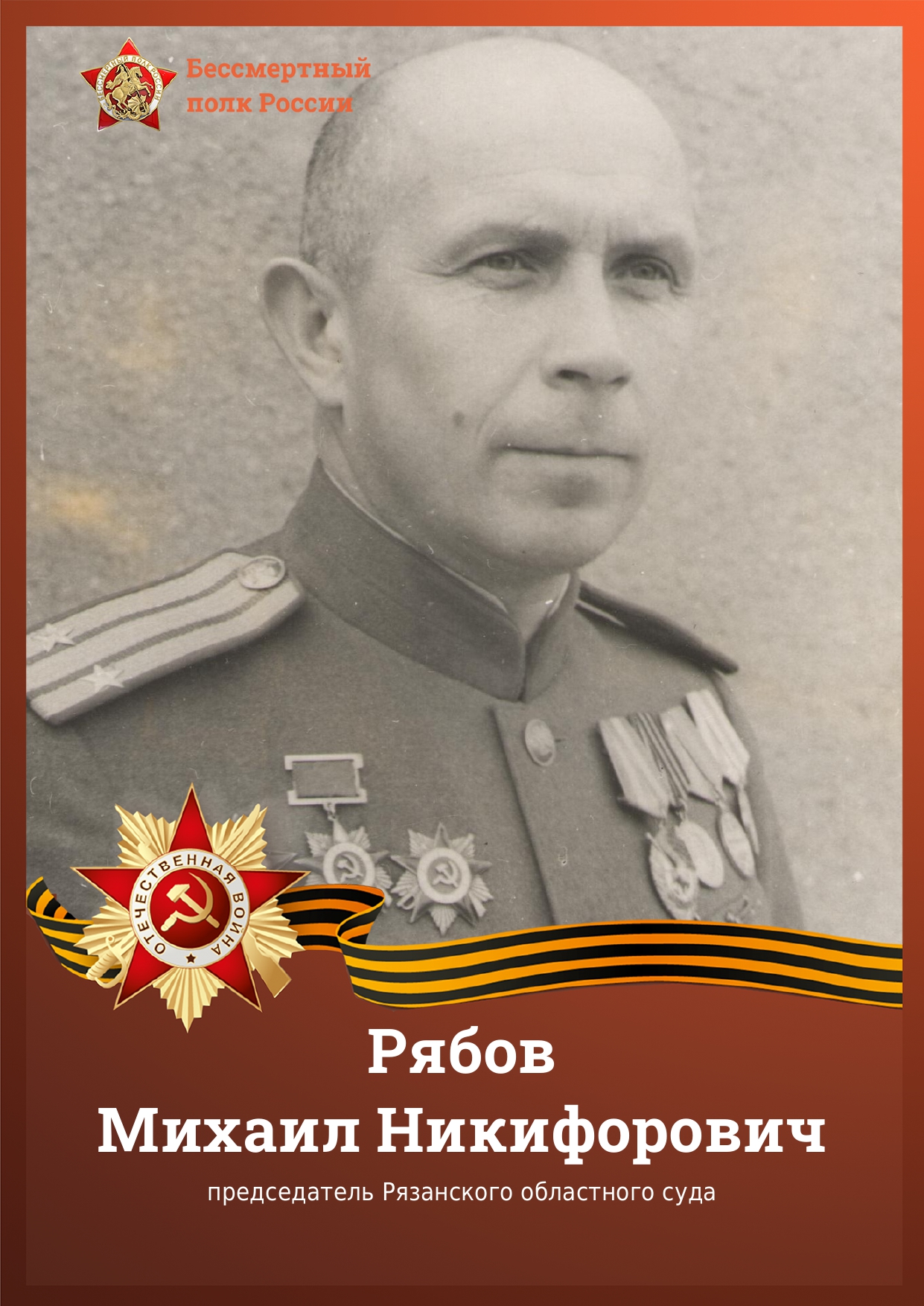 В апреле 1939 года Рябов М.Н. избран членом Рязанского областного суда, а в январе 1940 года – председателем Рязанского областного суда.