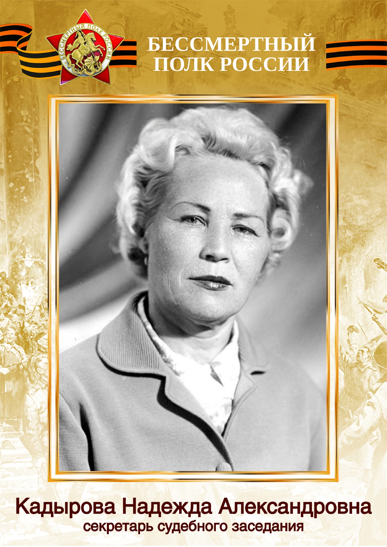 За добросовестный долголетний труд и образцовое выполнение должностных обязанностей Надежда Александровна Кадырова была награждена ведомственной медалью «За безупречную службу».