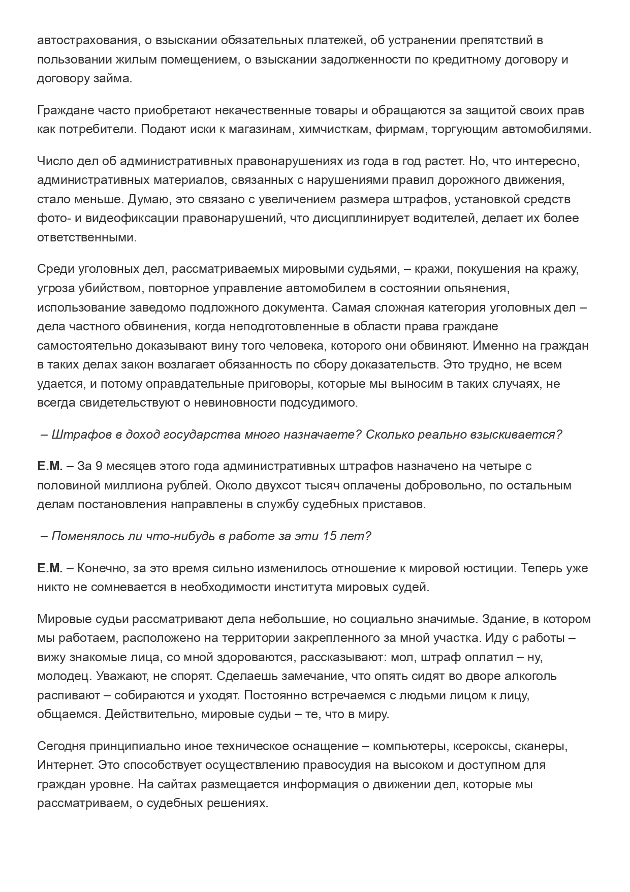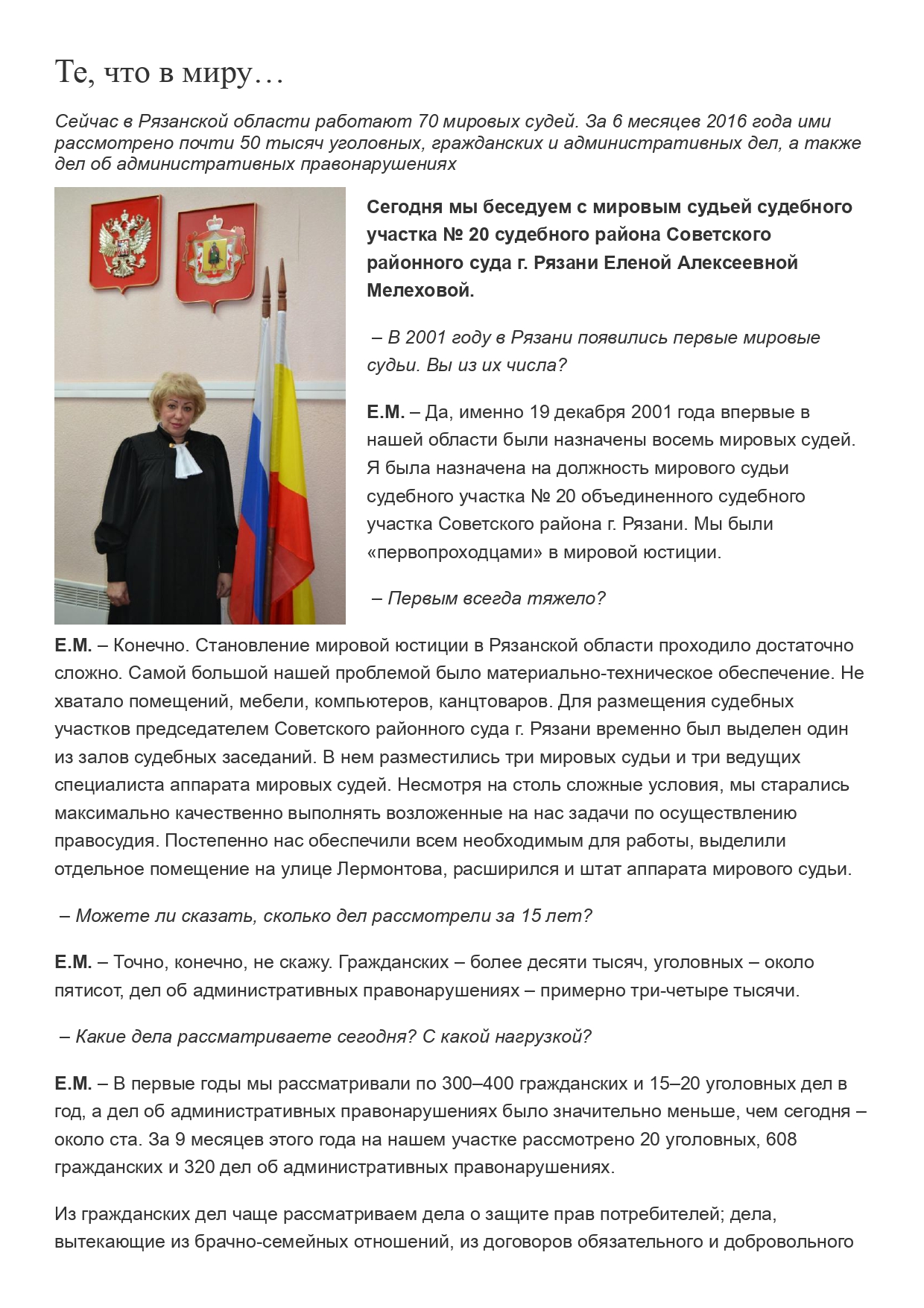 «Те, что в миру…» Интервью с судьей Е.А. Мелеховой. Ирина Матвеева, областная газета «Рязанские ведомости» от 11.11.2016 г.